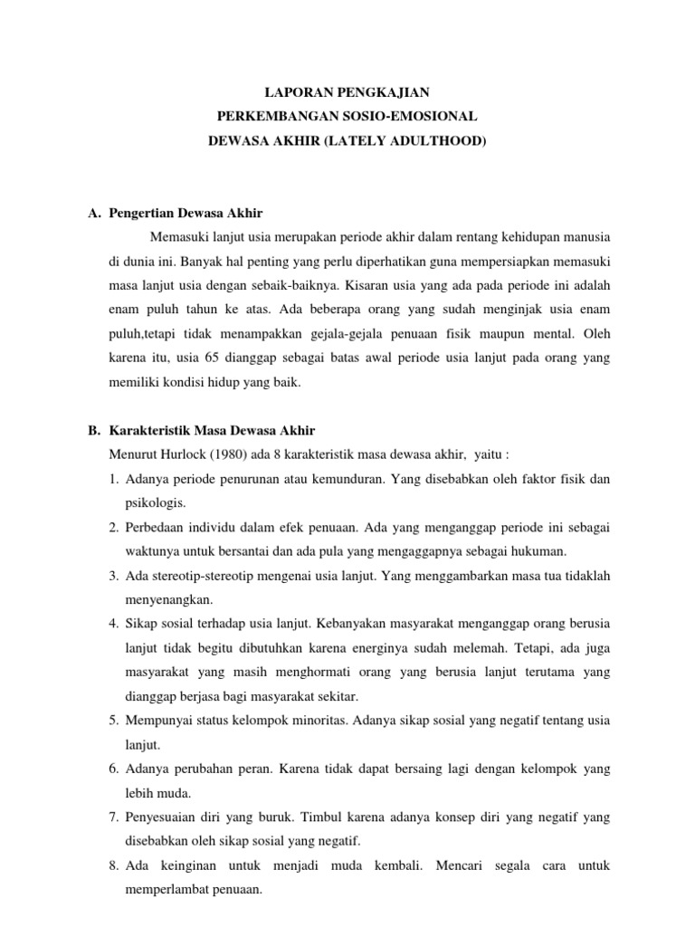 Tugas perkembangan masa dewasa awal adalah menjadi pribadi mandiri (santrock, 2009) dan membangun hubungan intim dengan george dan cristiani (1995) menulis tentang karakteristik personal konselor yang efektif. Pada makalah ini, penulis hanya menyajikan dua tahap pada masa dewasa yaitu. Perkembangan fisik dilihat dari aspek perkembangan fisik, pada awal masa dewasa kemampuan fisik mencapai puncaknya, dan sekaligus mengalami penurunan selama periode ini. Perkembangan sosial masa dewasa awal adalah puncak dari perkembangan sosial masa dewasa. Masa ini ditandai oleh kegiatan bersifat ekspreimen dan eksplorasi. Banyak ahli perkembangan percaya bahwa menentukan awal masa remaja lebih mudah daripada menentukan berakhirnya masa remaja dan permulaan masa dewasa. Rentetan perubahan perubahan dalam penurunan fisik yang terkait dengan penuaan. Perkembangan masa remaja usia 11 12 18 tahun jurnal perkembangan masa dewasa awal pdf, hurlock 1990 membagi masa remaja menjadi dua yaitu masa remaja awal 11 12 16 17 tahun dan remaja akhir 16 17 18 tahun pada masa remaja akhir individu sudah mencapai transisi. Kematangan emosi dan pola asuh permisif 23. Perkembangan masa dewasa awal a. Perkembangan motorik pada masa dewasa awal. Studi tentang perkembangan manusia 2. Perkembangan masa remaja (ngomongi segala hal tentang dunia remaja) | bimbingan konseling.